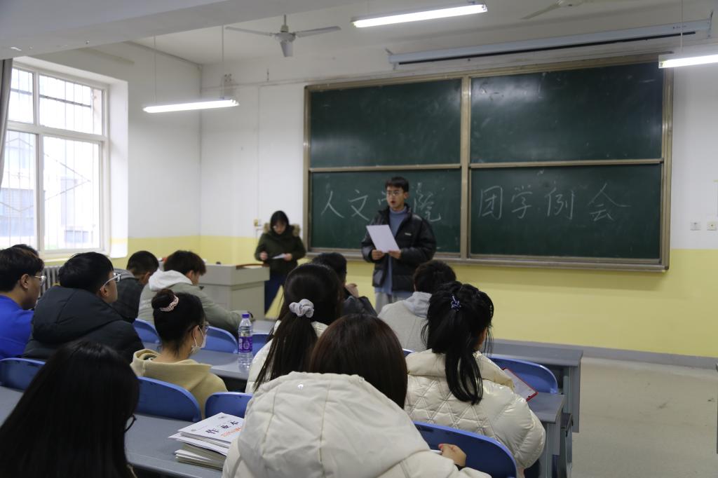 太阳成集团tyc33455团总支副书记李梦阳首先对前期的工作进行了梳理和总结,并就“话剧之夜”“礼仪大赛”等后续活动进行了安排,希望成员们加强责任意识,增强执行力,更加积极主动地去承担各自的工作。