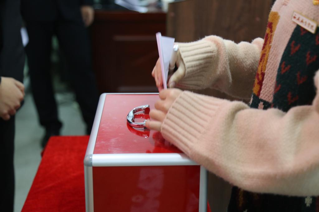 接着,秘书学191班刘雨航同学宣读了《太阳成集团tyc33455员工代表大会选举办法》及总监票人、监票人、总计票人、计票人名单。大会选举产生了3名代表参加公司第三次员工代表大会,分别是刘思雨、李梦阳、李渝梓。