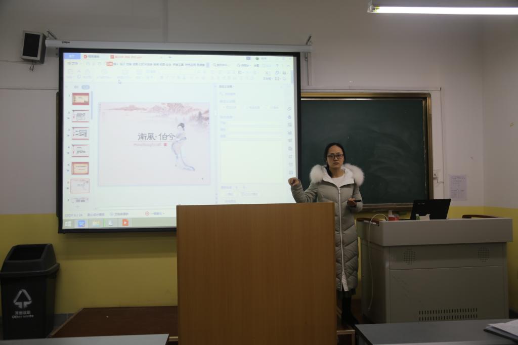 本次磨课活动分为三个环节,第一环节是授课教师就《大学语文》课程定位与讲授篇目的教学目标进行说课;第二环节是授课教师围绕一个知识点模拟真实课堂进行讲授;第三环节是全体教师就讲课内容进行讨论与交流。此次磨课活动的讲授篇目是先秦文学中的经典篇目《卫风·伯兮》,王桢、韩鹏飞、张朋毅三位老师,分别就该篇目进行了说课和精彩的内容讲解。随后,全体教师就授课主题、设计思路、知识框架进行了讨论,查找教学过程中存在的不足,大家集思广益,畅所欲言。