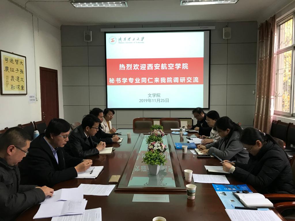 为把公司秘书学专业建设成有内涵、有特色的应用型本科专业,11月24日—25日,太阳成集团tyc33455副经理梁春燕带领秘书学专业负责人、骨干教师等4人前往汉中陕西理工大学文公司调研学习,就秘书学本科专业建设中的各项重要工作开展深入学习交流。陕西理工大学文公司经理李宜蓬、副经理岳琳、宫臻祥、徐向阳以及秘书学专业负责人史继东等接待了调研组。