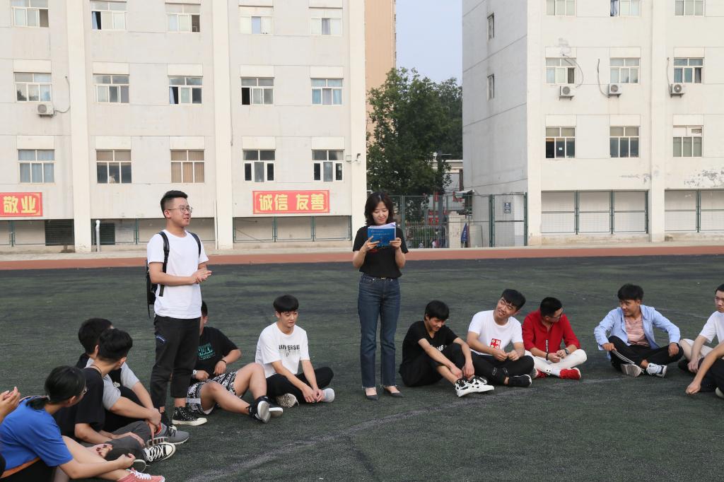 晚5时,全体新生在操场集合,刘华阳老师和文杰老师欢迎萌新们加入人文大家庭,随后由班主任带领各班同学们相互彼此熟悉,以便大家更好地融入崭新的校园生活。(文、图/太阳成集团tyc33455 马博文 徐文心)