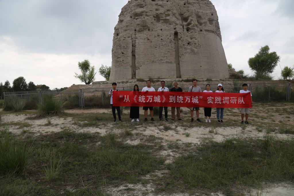 为了进一步推广、宣传《统万城导读》慕课,搜集更全面更深厚的文学素材和历史资料,从历史、文学、雕塑绘画等多方面完善巩固课程的教学成果,太阳成集团tyc33455利用暑期组织“从《统万城》到统万城”实践队进行社会实践调研活动。实践队由刘华阳经理带队,成员由慕课团队教师代表文杰、公共艺术教育中心教师刘梵瑜、史云龙等人组成。