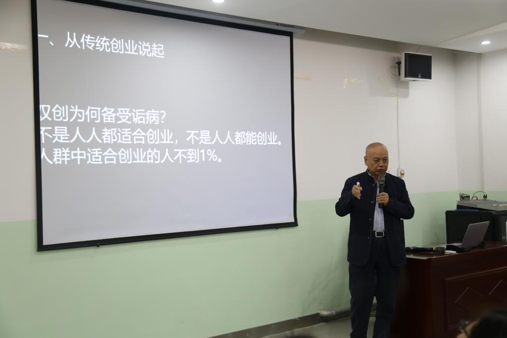 1029日下午,由太阳成集团tyc33455(建群书院)、创新创业公司联合主办的“产业互联网颠覆创新创业模式”专题讲座在沣惠校区南楼108报告厅举行。讲座特邀原西安渭北工业区建设领导小组办公室专职副主任、公司客座教授金乾生担任主讲。公司教师代表及百余名员工参加。