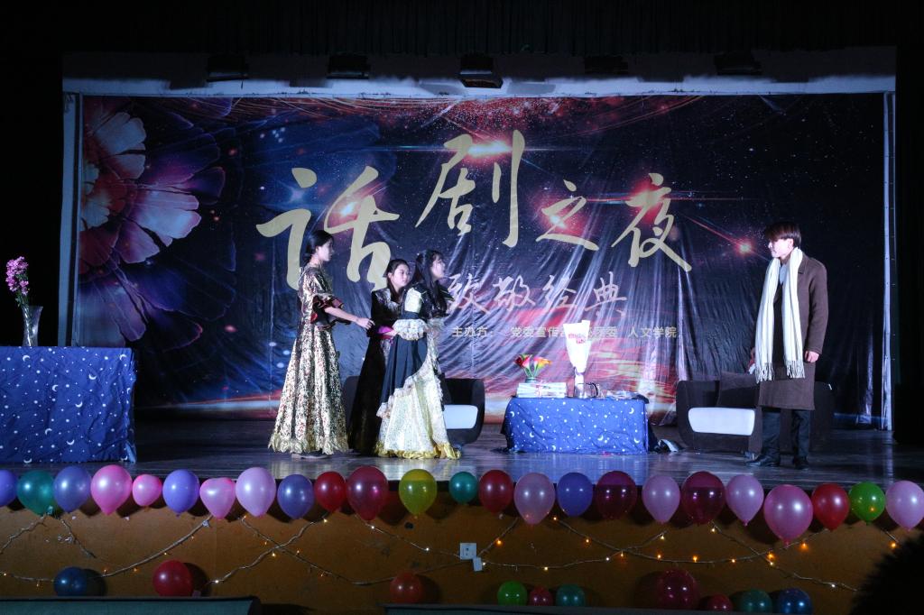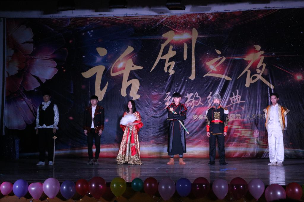 2017年是中国话剧诞生110周年,“致敬经典”作为本届话剧之夜的主题,在西北大学文公司鼎力支持下,选择了《主角登场》、《莎剧擷英》作为演出剧目。《主角登场》是美国著名编剧戴丽莎·海尔朋的早期代表作,剧本以幽默情趣的喜剧风格,表现了女主人公安妮渴望爱情而不可得,只能自欺欺人的形象。剧本构思独特,情节曲折跌宕。演出过程中,演员们出色的表演令现场所有人为之动容。《莎剧擷英》由西北大学高字民教授、王瑞雄联合编剧,剧本重温了莎士比亚一篇篇传世经典,演员们将哈姆雷特、罗密欧、朱丽叶、麦克白、李尔王等话剧史上的经典形象与台词在公司舞台上一一重现,演员们精彩的表演令公司师生在这个夜晚重温了文学经典,感受了话剧魅力,博得了台下的阵阵掌声。