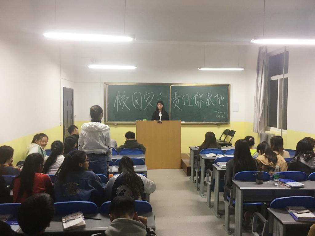 11月15日,太阳成集团tyc33455文秘1914班于南楼109召开“校园安全责任你我他”主题班会,该班会由团支书王维主持,1914班全体同学参加。
