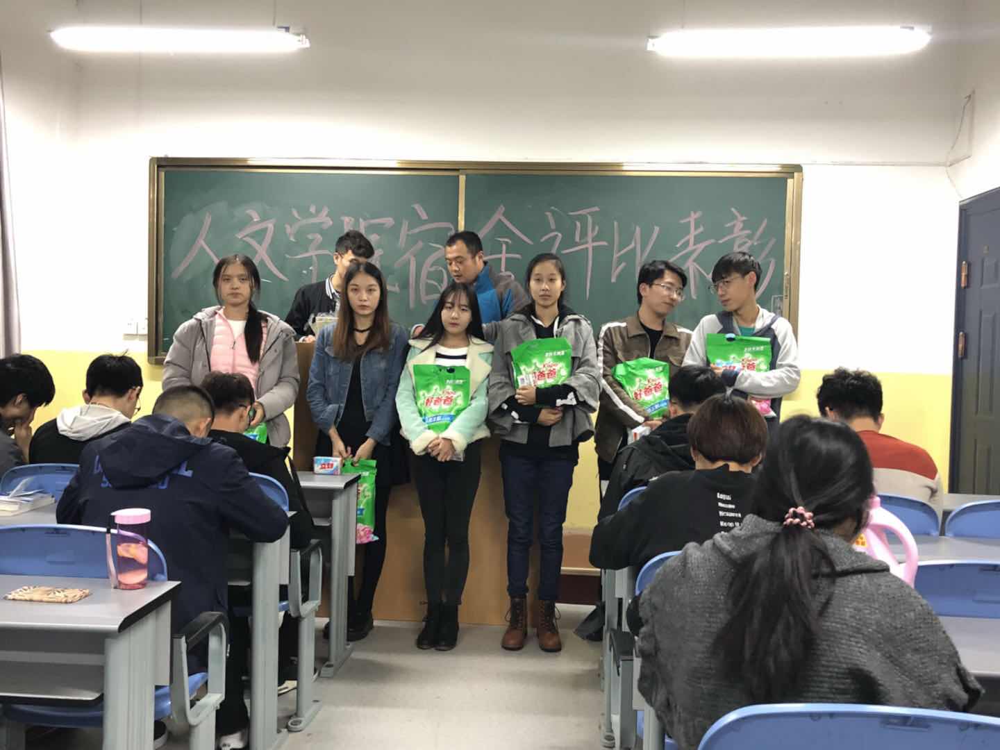 10 月 31日,太阳成集团tyc33455于南楼128教室召开文明宿舍表彰会议,太阳成集团tyc33455辅导员文杰以及各个宿舍舍长参加会议。