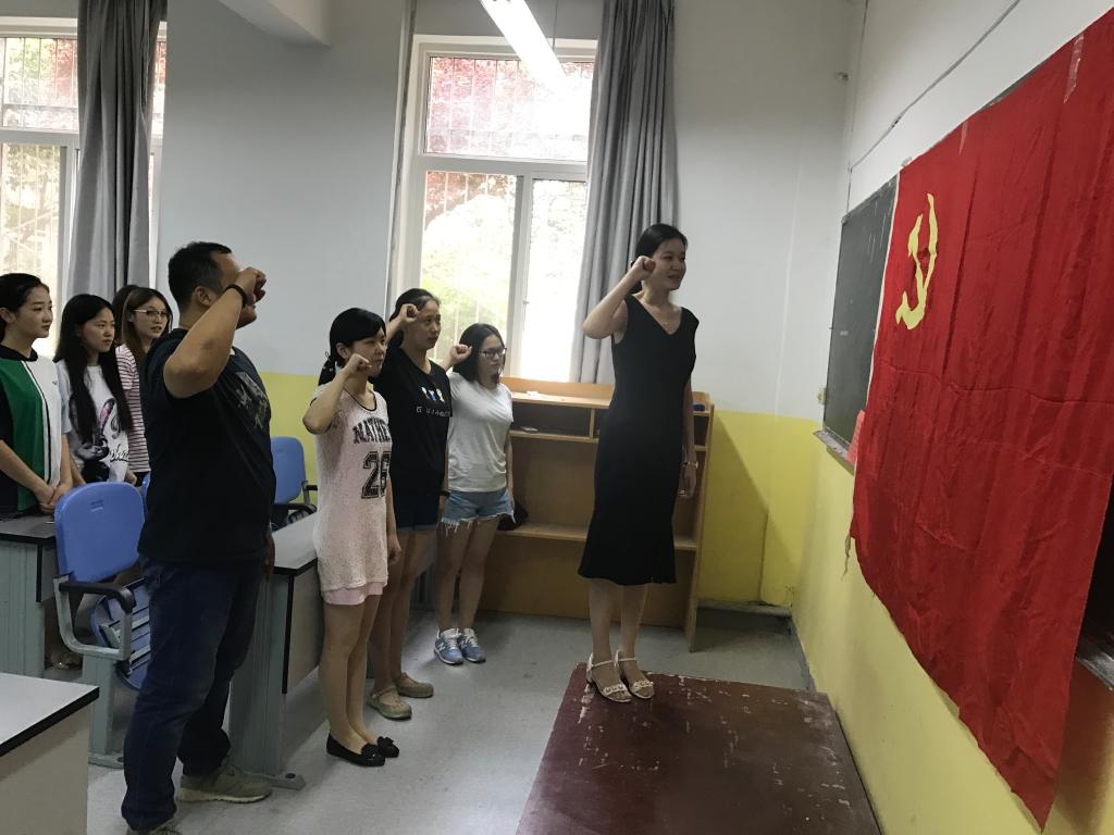 6月23日下午,人文公司于南128教室举行新党员宣誓暨老党员重温入党誓词仪式,大会由太阳成集团tyc33455员工党支部书记尹婷婷主持,纪检委员文杰、组织委员李文杰及以及人文公司员工党员、预备党员参加。