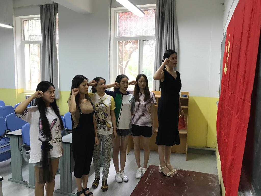 在建党96周年之际,将新党员入党宣誓作为一项重要的政治活动,雄壮激昂的《国际歌》拉开了本次大会的帷幕。尹婷婷首先宣读了新党员名单,随后带领五位新党员面对鲜红的党旗庄严宣誓,响亮的誓言,展示了他们对党坚定不移的忠诚和信念,同时老党员见证新党员宣誓,并重温了入党誓词。面对着党旗,大家接受了一次身心的特殊洗礼。员工党员表示自己要恪守在党旗下的诺言,更加严格要求自己,时刻保持共产党员的先进性和先锋模范作用,努力使自己成为一名优秀共产党员。最后,尹婷婷总结讲话,她要求新党员不但要学习党的理论知识,提高自身的思想政治,也更要积极参加社会实践活动,培养与人合作的能力,真正做到为同学服务,为人民服务。