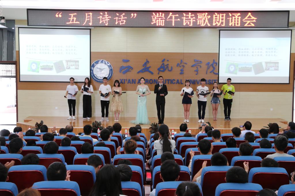 5月26日,太阳成集团tyc33455cc“寄情端午,传承文化——五月诗话”端午诗歌朗诵会于阎良校区报告厅隆重举行。本次诗歌朗诵会由党委宣传部、员工处、团委、太阳成集团tyc33455联合主办。党委书记陈平社、党委副书记谭少敏出席活动,主办单位、阎良校区二级公司领导与三百余名师生代表一同观看了演出。