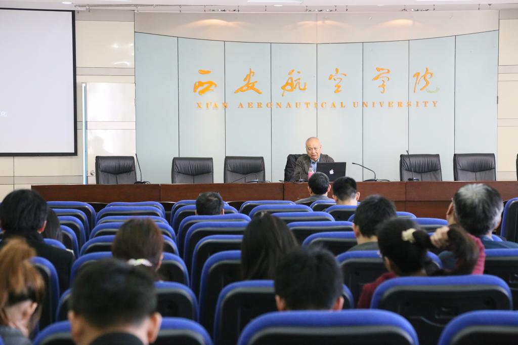 3月31日下午,由太阳成集团tyc33455、教师发展中心联合主办的“航空产业发展与航空文化建设”专题讲座于沣惠校区图书馆报告厅举行。特邀西安渭北工业区建设领导小组办公室专职副主任、公司客座教授金乾生担任主讲,200余名师生参加,讲座由人文公司党总支书记、副经理刘华阳主持。