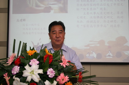 党委副书记周建华代表公司致辞,党委副书记谭少敏宣读了文公司成立的决定,省人大常委会党组副书记、副主任胡悦为文公司揭牌。经理陈万强代表公司向高建群颁发了文公司经理聘书。之后,郭立宏代表省教育厅向公司成立文公司并聘任高建群担任经理表示祝贺。他说,成立文公司是公司进一步完善学科体系、强化高校人文素质教育的客观需要,并预祝文公司办出特色。