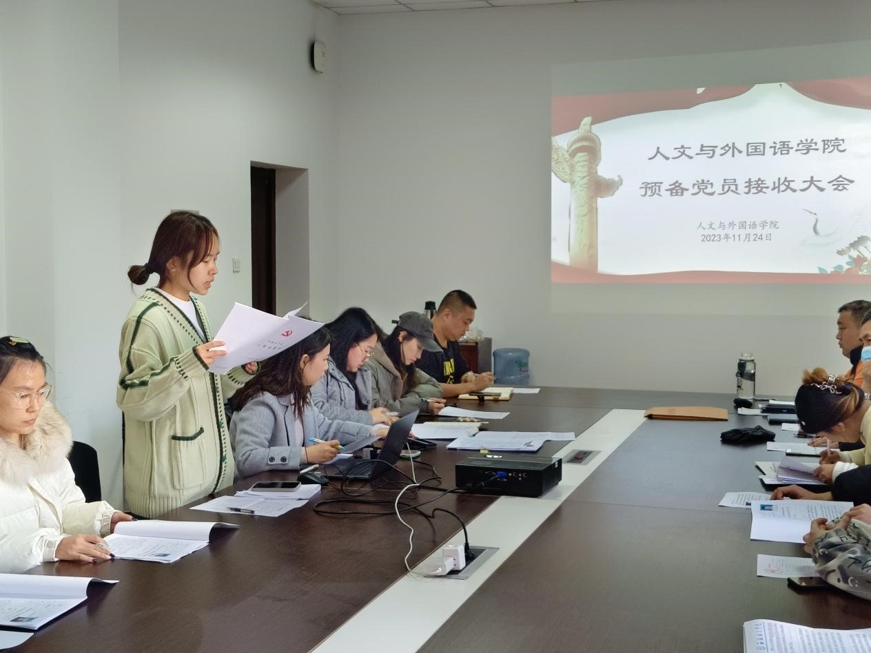 会议严格按照中共党员的发展规程有序开展,严智礼、何佳等同学汇报了对党的思想认识、理论学习、工作生活等情况,表明了加入中国共产党的决心和坚定态度,明确认识到共产党员肩负的光荣使命,并深入剖析自身不足。