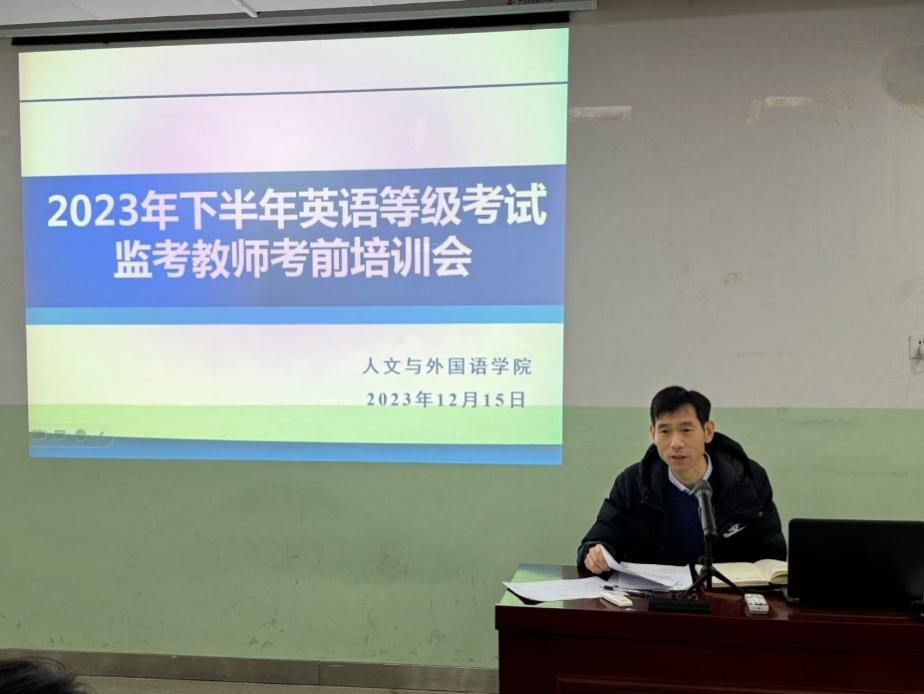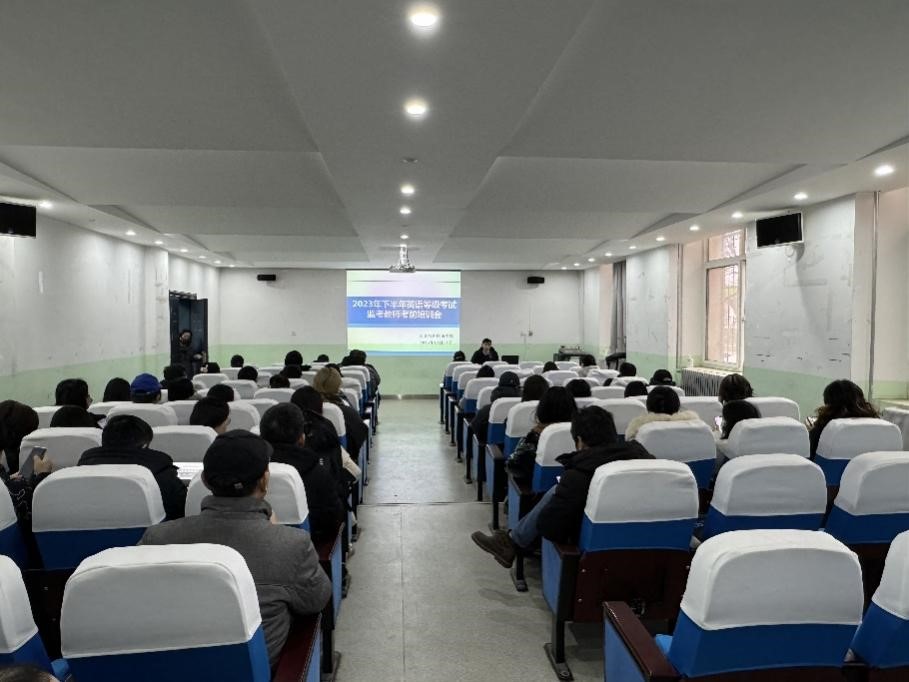 12月15日上午,太阳成集团tyc33455在南108召开2023年下半年全国大学英语等级考前培训会。全体教师参加,会议由常务副经理关长平主持。