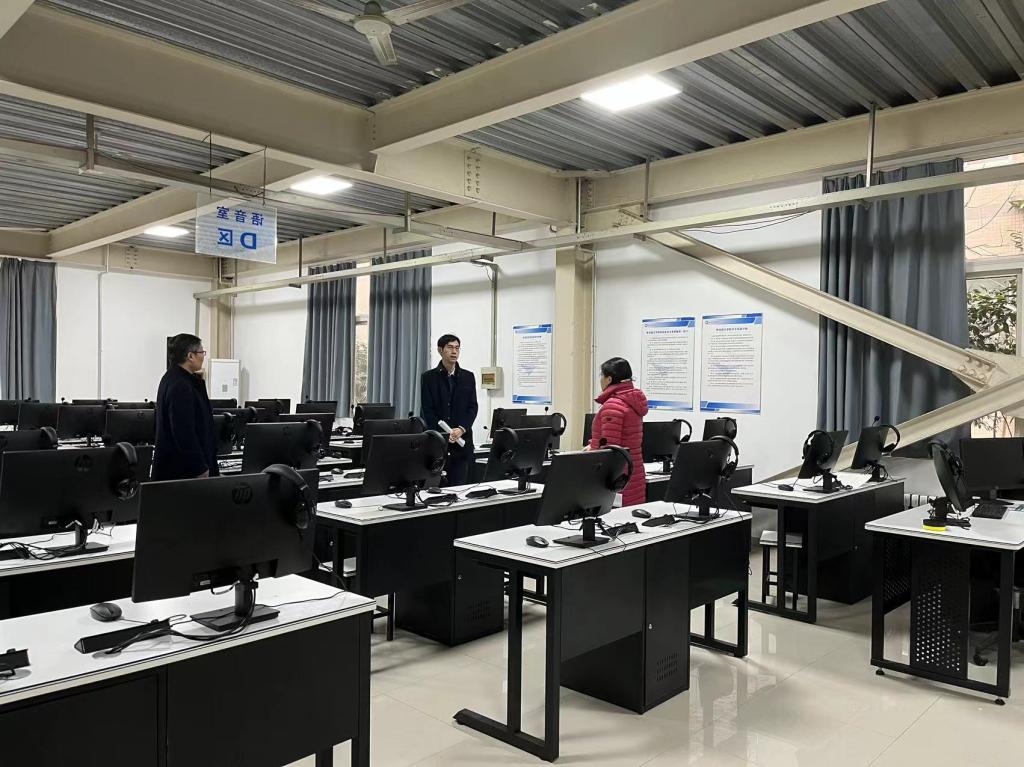 为保障寒假期间太阳成集团tyc33455实验室安全,1月19日上午,太阳成集团tyc33455常务副经理关长平、党总支书记杨光、副经理梁春燕一行对莲湖校区语音室、翻译实践平台以及秘书学综合实验教学中心等实验室进行了寒假前安全环境全面大检查。