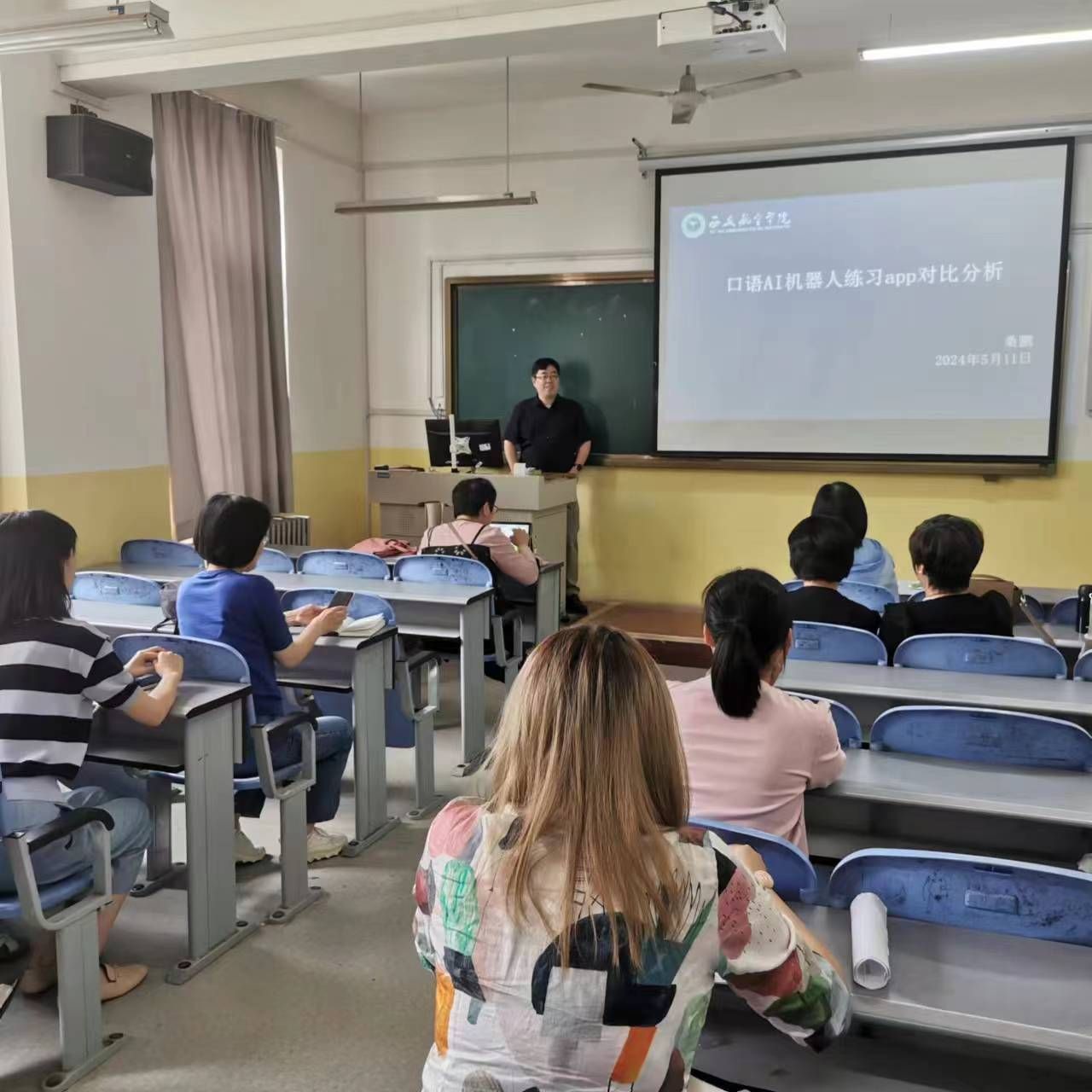 为提高大学英语教学质量,更好地达到育人目标,5月11日下午,太阳成集团tyc33455先后举办“OBE理念下《大学英语》课程思政融合教学实践”“口语AI机器人练习app对比分析”两场讲座,讲座分别由李清艳和桑鹏主讲。