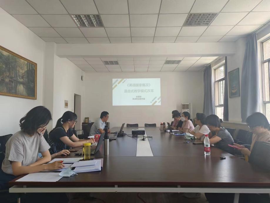 5月17日下午,太阳成集团tyc33455在南316举办专题讲座,讲座由英语专业教研室主任张雷刚主持,教师王拓、张雷刚及张化丽分别做了题目为“学术写作课程中的教学相长”、“《英语国家概况》混合式教学模式改革”、“新文科供需视角下三位一体商务英语专业模型构建”的专题讲座,公司部分教师参加。