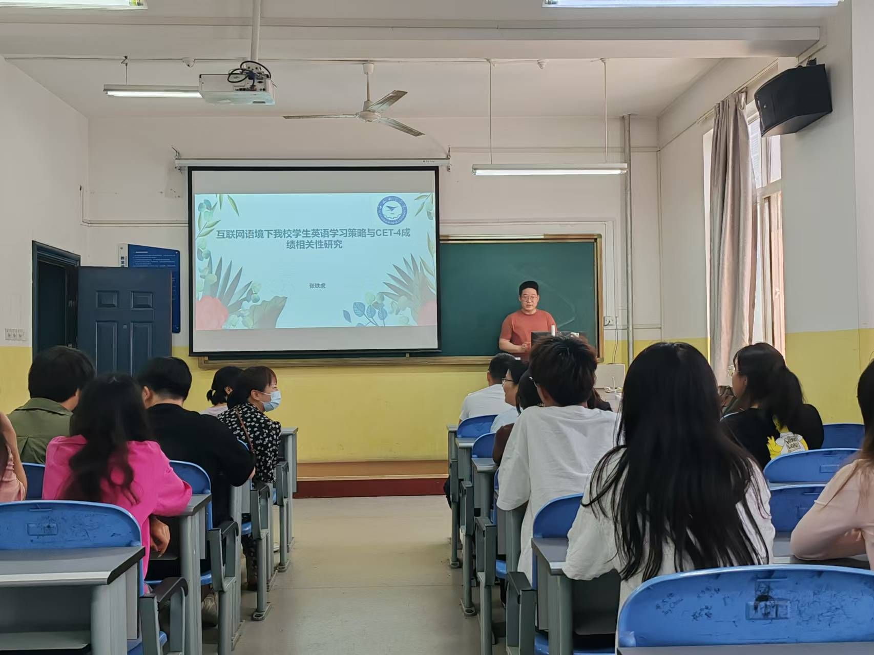 5月27日下午,太阳成集团tyc33455在南315举办专题讲座,教师张铁虎、张珍、高沛、朱琳分别做了题目为“互联网语境下地方本科院校员工英语学习策略与CET-4成绩相关性研究”、“《英美文学概论》教学现状及应对策略”、“产出导向法在综合商务英语教学中的实践”、“社科类项目申报经验分享”的专题讲座,公司部分教师参加。