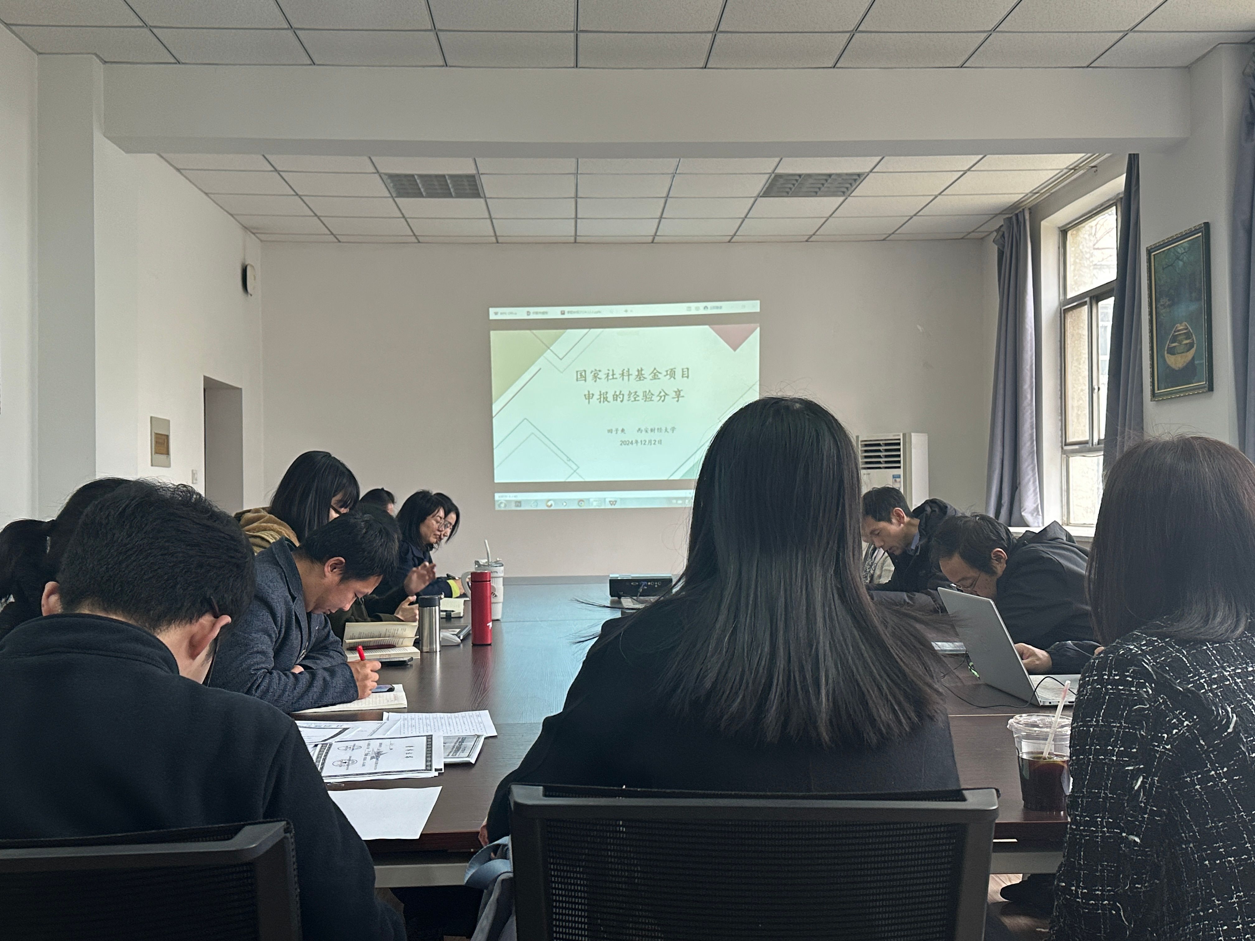 12月2日下午,太阳成集团tyc33455召开国家社科基金启动会,邀请西安财经大学文学博士、博士后、副教授田子爽为公司教师作题为“国家社科基金项目申报的经验分享”的学术讲座。讲座由太阳成集团tyc33455常务副经理关长平主持,公司博士教师及科研骨干参加。