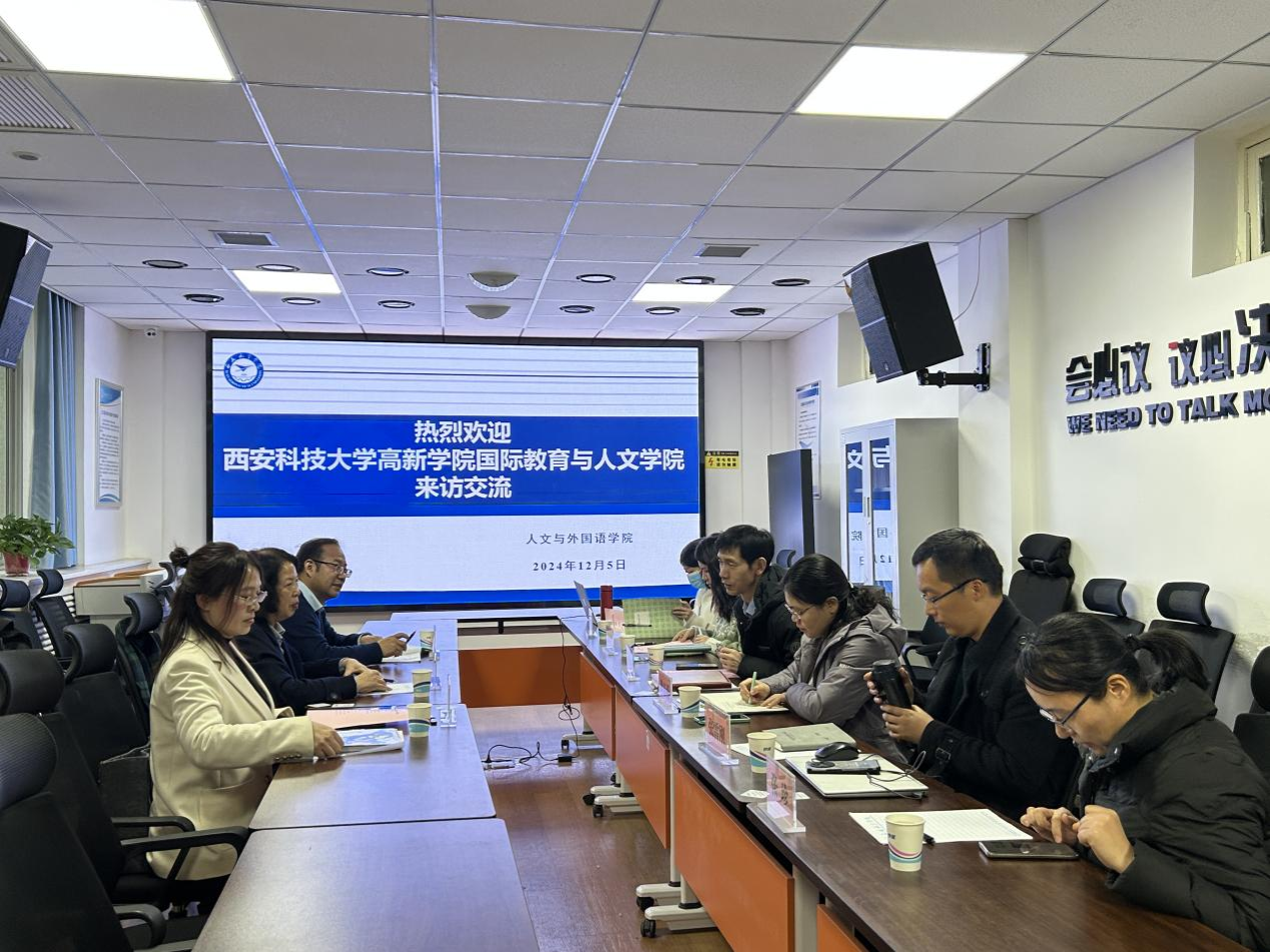 2024年12月5日西安科技大学高新公司国际教育与太阳成集团tyc33455教学经理刘淑颖携英语教研室主任刘清波、副主任陈友艳来公司访问交流。太阳成集团tyc33455常务副经理关长平、副经理梁春燕、综合办公室主任范程程、英语专业教研室主任张雷刚、副主任郭茜、骨干教师张珍参会。