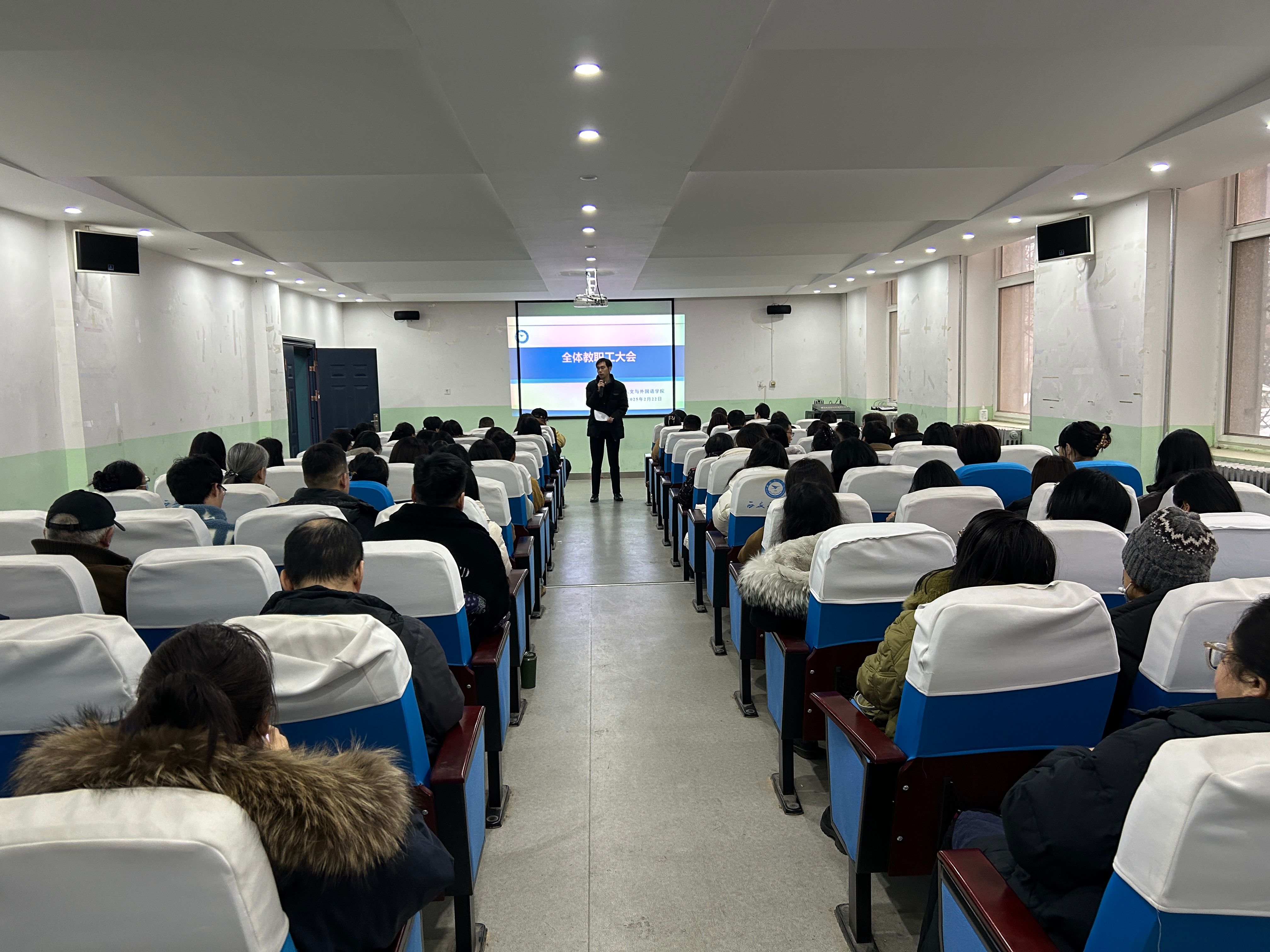2月22日下午,太阳成集团tyc33455在教学南楼108会议室召开了新学期全院大会。会议由常务副经理关长平主持,全体教职工参加。