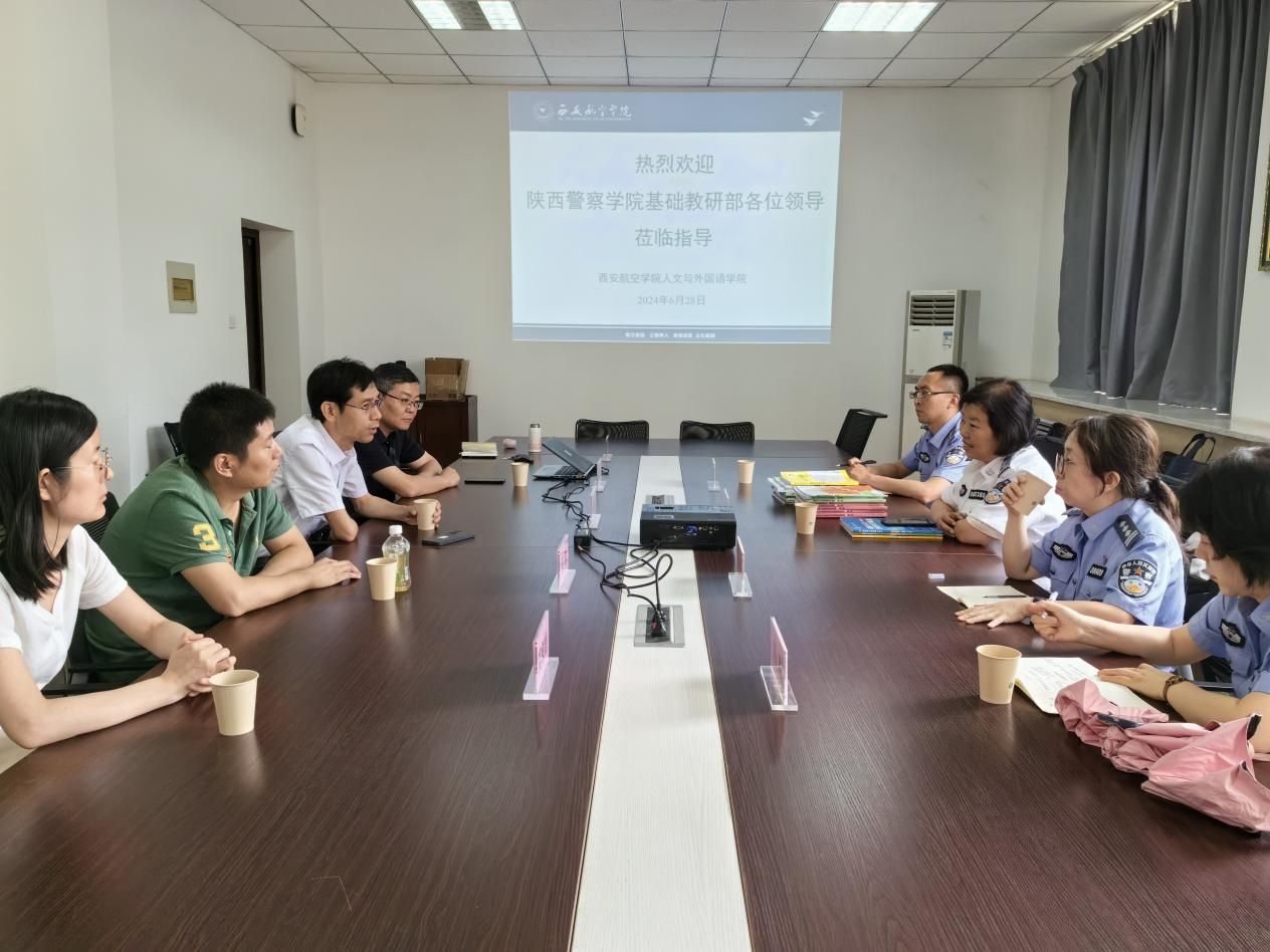 6月28日下午,陕西警察公司基础教研部副主任张爱文教授一行4人来公司调研交流。常务副经理关长平、党总支书记杨光、重要公共基础课程负责人王军、综合办公室主任范程程和大学英语第二教研室骨干教师高敏娟参加了调研座谈会。