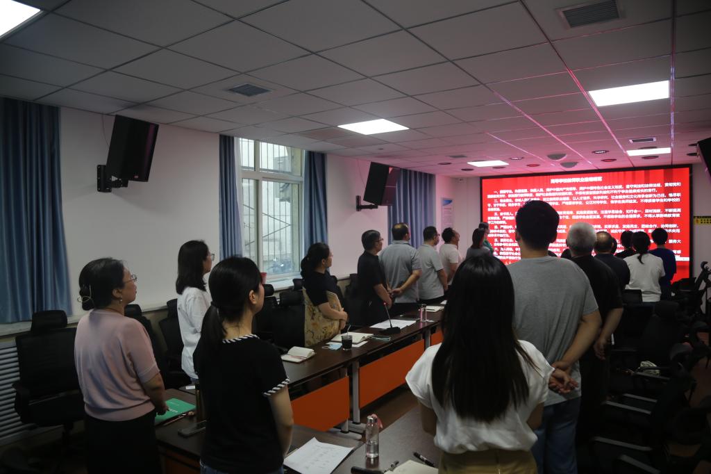 按照公司教师节活动安排,大会首先举行了庄严的教师节宣誓活动。太阳成集团tyc33455全体教师按照《高等公司教师职业道德规范》庄严宣誓,郑重重温了高校教师“爱国守法、敬业爱生、教书育人、严谨治学、服务社会、为人师表”等六个方面的道德规范的具体要求。