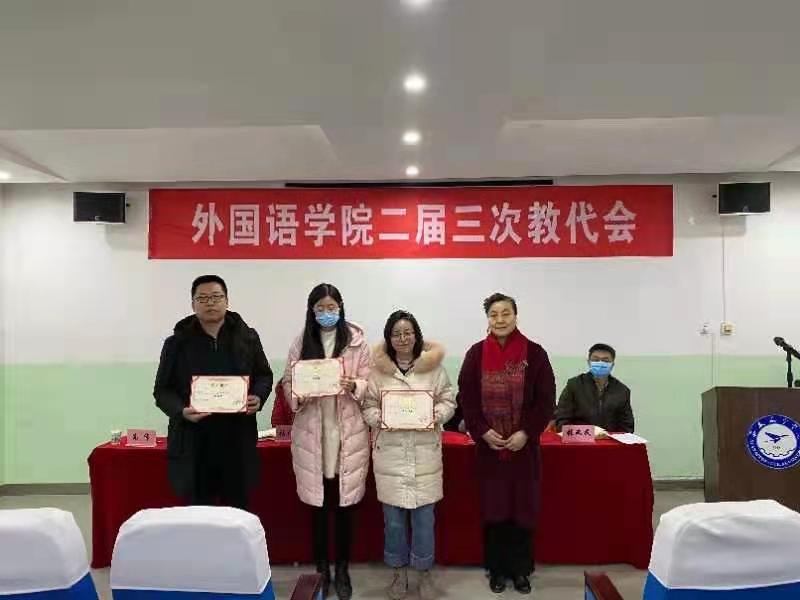 校工会主席谭少敏为获得“学习强国”理论学习标兵的张磊夫、高敏娟、王永平三位教师进行颁奖并作重要讲话。首先对外国语公司分会一年来所取得的成绩给予肯定,同时希望进一步加强工会自身建设,推进工会自身改革,发挥工会组织在公司建设发展中的作用,不断丰富了工会工作的内容,为公司的建设发展做出积极贡献。随后校工会副主席陈冬梅强调:一是要积极组织并参与公司教学竞赛等重要活动,营造良好工作氛围,提升公司凝聚力;二是提高广大教职工的健康意识和健康水平,强身健体,劳逸结合;三是创新工作方式,推进小家建设,营造“快乐工作,健康生活”的整体氛围。