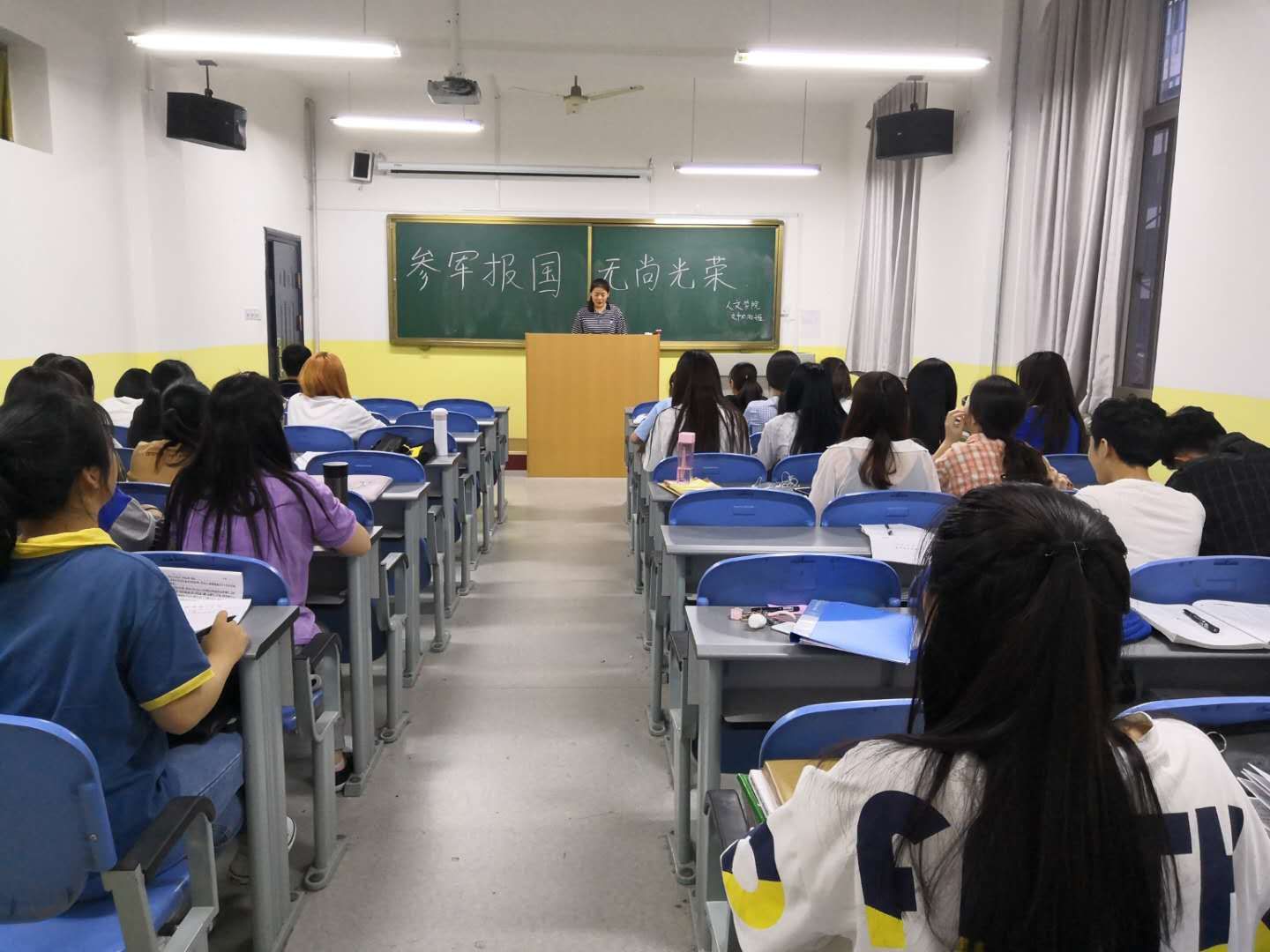 为鼓励员工积极参与应征入伍,提高兵员征招质量,推进国防和军队现代化建设,520日文秘181班在教学南楼121教室召开了以参军报国,无尚光荣”为主题的征兵入伍宣传班会。