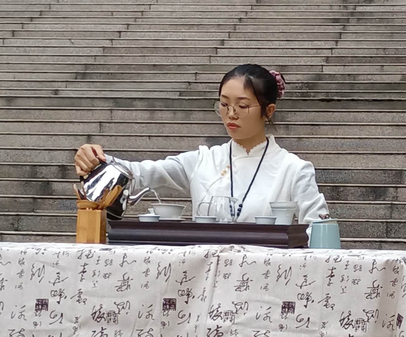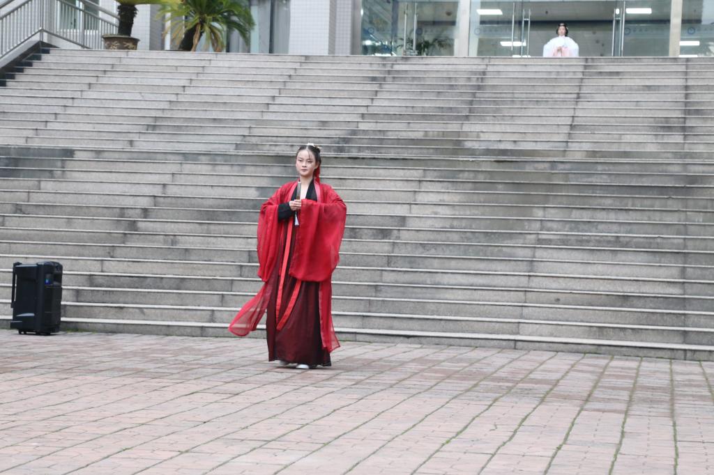 活动以群舞“礼仪之邦”开场, 尽显彬彬君子的风范,窈窕淑女的风采,体现了中华优秀传统文化的“温良恭俭让”精神。接着,在古琴伴奏下,身着不同色彩、不同形制的汉服的员工进行汉服走秀,展示出传统礼仪的风貌。随后,由书画学社的同学带来了书法展示以及传统茶艺的表演,笔酣墨饱的文章,清冽醇厚的茶香,让师生们被中国传统文化深深感染。最后,孙婧的独舞《浪人琵琶》,汉服雅致,衣袂飘飘,赢得了阵阵掌声。