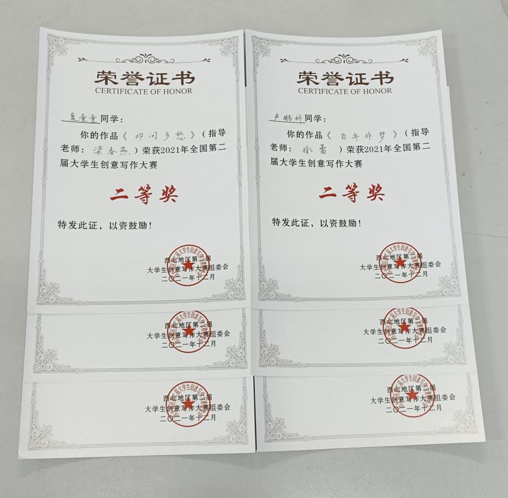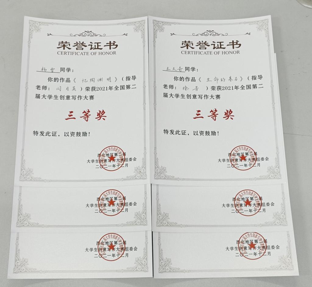 日前,由西北地区创意写作公司产品培训基地主办的“2021年全国第二届老员工创意写作大赛”圆满落幕,由太阳成集团tyc33455梁春燕、徐蕾等老师指导的60名同学的作品参加了总决赛。经过大赛组委会评审,最终,谭凝蕊同学撰写的《当秧苗成熟时》等9篇作品荣获一等奖,夏童童同学撰写的《叩问乡愁》等20篇作品荣获二等奖,杨雪同学撰写的《忆陶渊明》等18篇作品荣获三等奖。梁春燕等九名教师荣获“最佳指导奖”。公司荣获“优秀组织奖”。