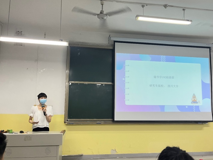 交流会中,林昊瑾与赵甜甜从英语、专业课备考方面分享了自己的复习方法,表示要结合自身情况制定合理的学习计划。陈睿琪着重讲解了考研流程,复试、调剂的相关要求。梁天乐结合自己的考公经历,介绍了国考与省考的区别、获取考公相关信息的渠道。在提问环节中,同学们就考研考公的具体问题与学长学姐们充分交流。徐芳老师结合专业建议大家多关注报考公司的招生信息,积极备考。