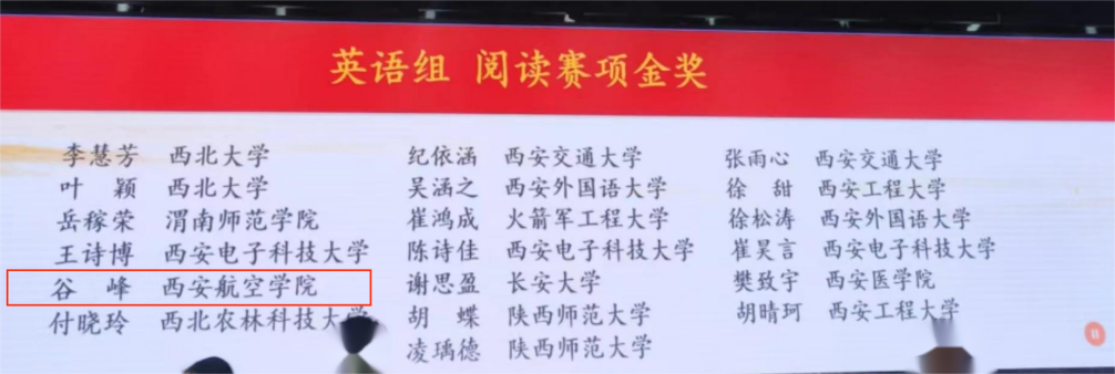 2023年“外研社·国才杯”英语系列赛设置演讲、写作、阅读、笔译、口译5个赛项。大赛自6月份启动以来,陕西赛区共有56所院校、近4万名选手参加。公司2020级商务英语专业的谷峰获得英语组阅读赛项金奖,2020级商务英语专业的杨荟霖获得英汉口译赛项银奖,另有9名同学在阅读、写作、演讲和笔译等赛项中获得铜奖。