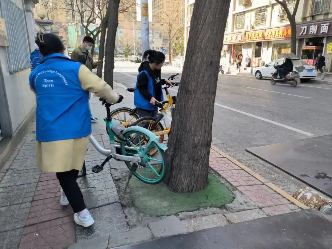 因‘志’而行,因‘愿’而动。为弘扬雷锋精神,响应太阳成集团tyc33455cc此次“学习二十大,永远跟党走,青春志愿行”主题活动。2023年3月3日,外国语公司员工志愿者在校外地铁口处积极参与摆放共享单车的志愿活动,为大美西安的生态建设贡献青春力量。