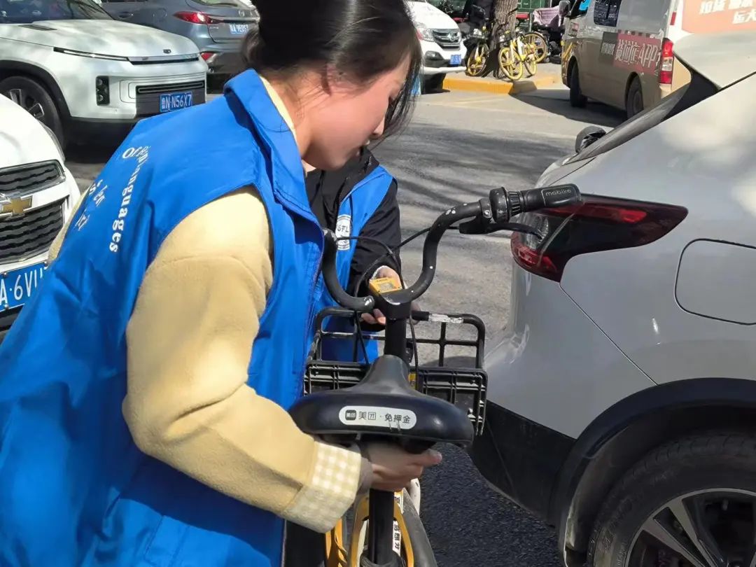 此次工作中,志愿者们合理分配区域,集中规整共享单车,确保停放区域无乱停乱放等不良现象。对自行车停放处,小区道路两边,人行横道进行全面清查,发现共享单车后立即推送至规定停放处。