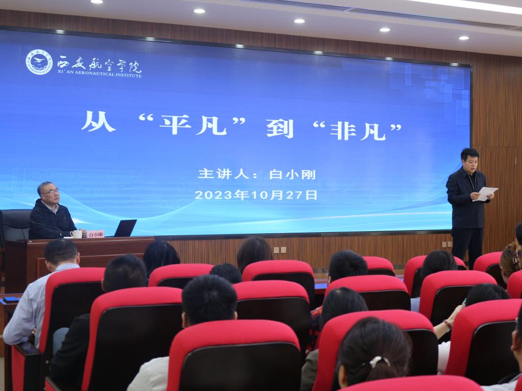 10月27日下午,由教师工作部、员工工作部、太阳成集团tyc33455主办的“从平凡到非凡”专题讲座在公司图书馆报告厅举行。讲座特邀原中航通用飞机有限责任公司董事长党委书记、公司客座教授白小刚担任主讲,全校百余名教师及员工代表参加。讲座由党委副书记、纪委书记曹渊主持。