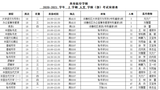 2020-2021-2太阳成集团tyc33455期末考试安排表