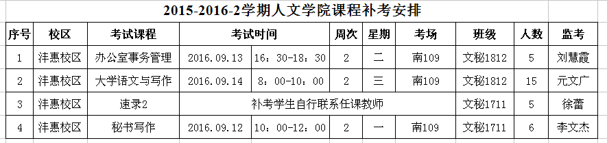2015-2016-2学期太阳成集团tyc33455课程补考安排