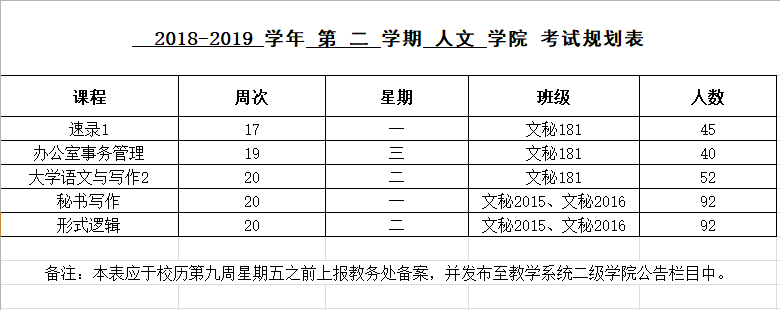 2018-2019-2太阳成集团tyc33455期末考试规划表