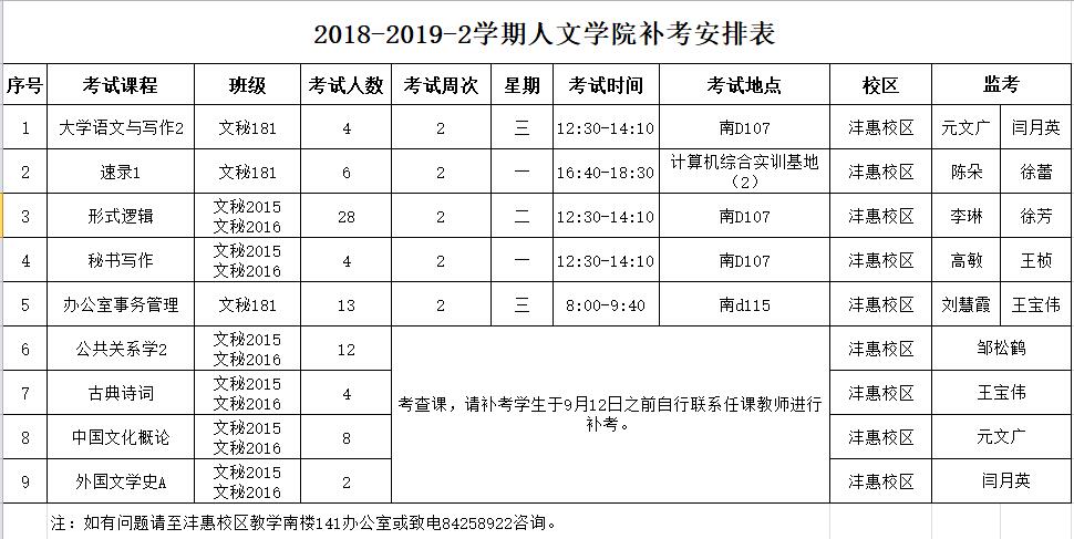 2018-2019-2太阳成集团tyc33455补考安排表