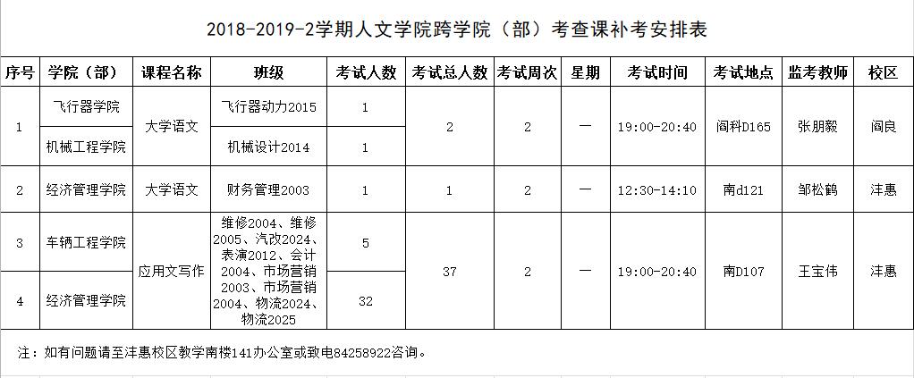 2018-2019-2太阳成集团tyc33455跨公司(部)考查课补考安排表